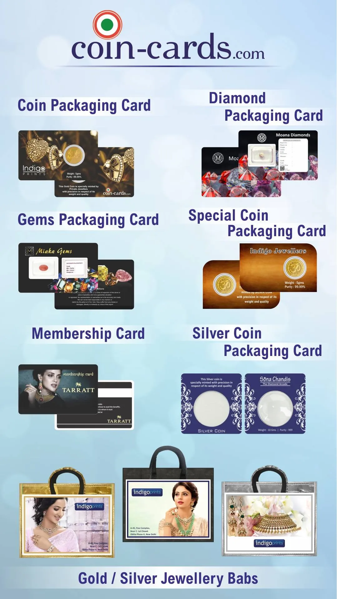 JMD Printing company offers advanced range of promotional products which are available in the form of coin packaging cards, Bar Packing cards , diamond and stone packing cards , plastic pocket calendar and exclusive shopping bags.